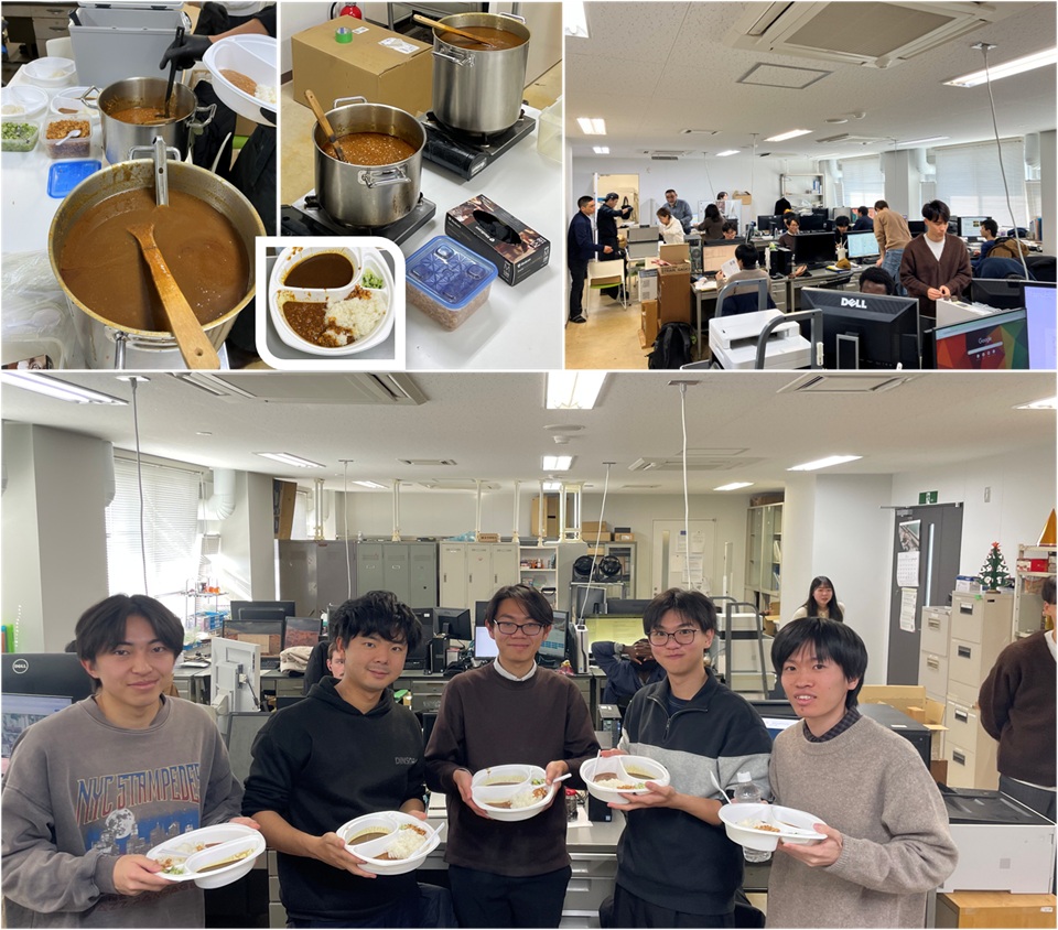 後列左より M2米田君、佐藤さん、北村君