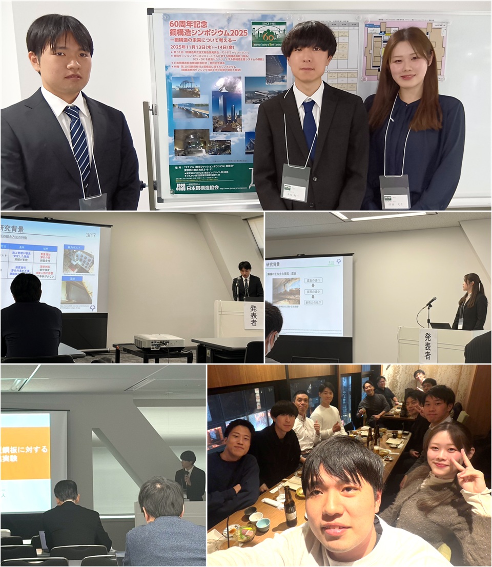 『鋼構造シンポジウム2025』に、M2北村君、佐藤さん、米田君が参加しました。